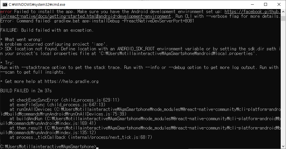 지금 저는 ANDROID_SDK_ROOT가 없다고 build failed가 떴습니다.