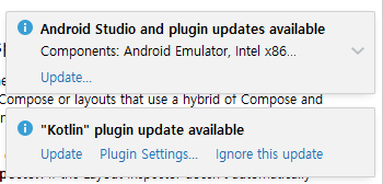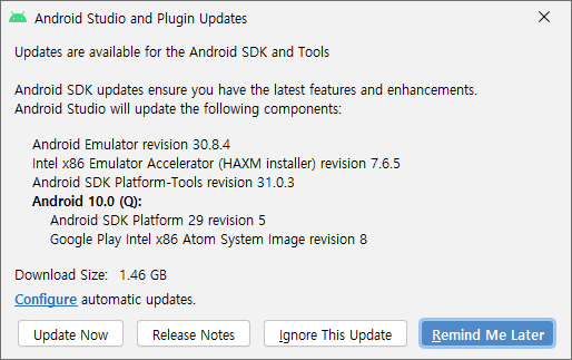 이번에 또 안드로이드 스튜디오 update가 된다고 하길래 업데이트 시켜줬습니다.