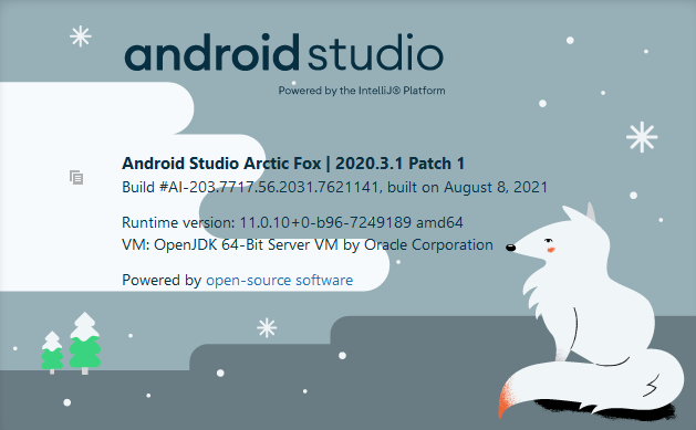 버전이 android 4.1.1에서 android arctic fox 2020.3.1 로 변경되었습니다.