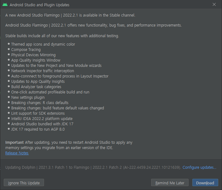 역시나! 안드로이드 스튜디오 Update가 있네요