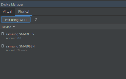 Device Manager에 Physical 탭에 Pair using Wi-Fi를 클릭합니다.