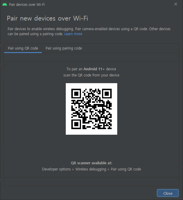 스마트폰의 무선디버깅 부분에도 같은 메뉴가 있습니다.