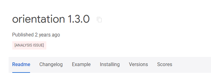 문제1. Orientation pub.dev에 버전은 1.3.0이지만, 2년째 업데이트를 하지 않고 있으며, analysis issue로 뜬 비정상적인 라이브러리 상태입니다.